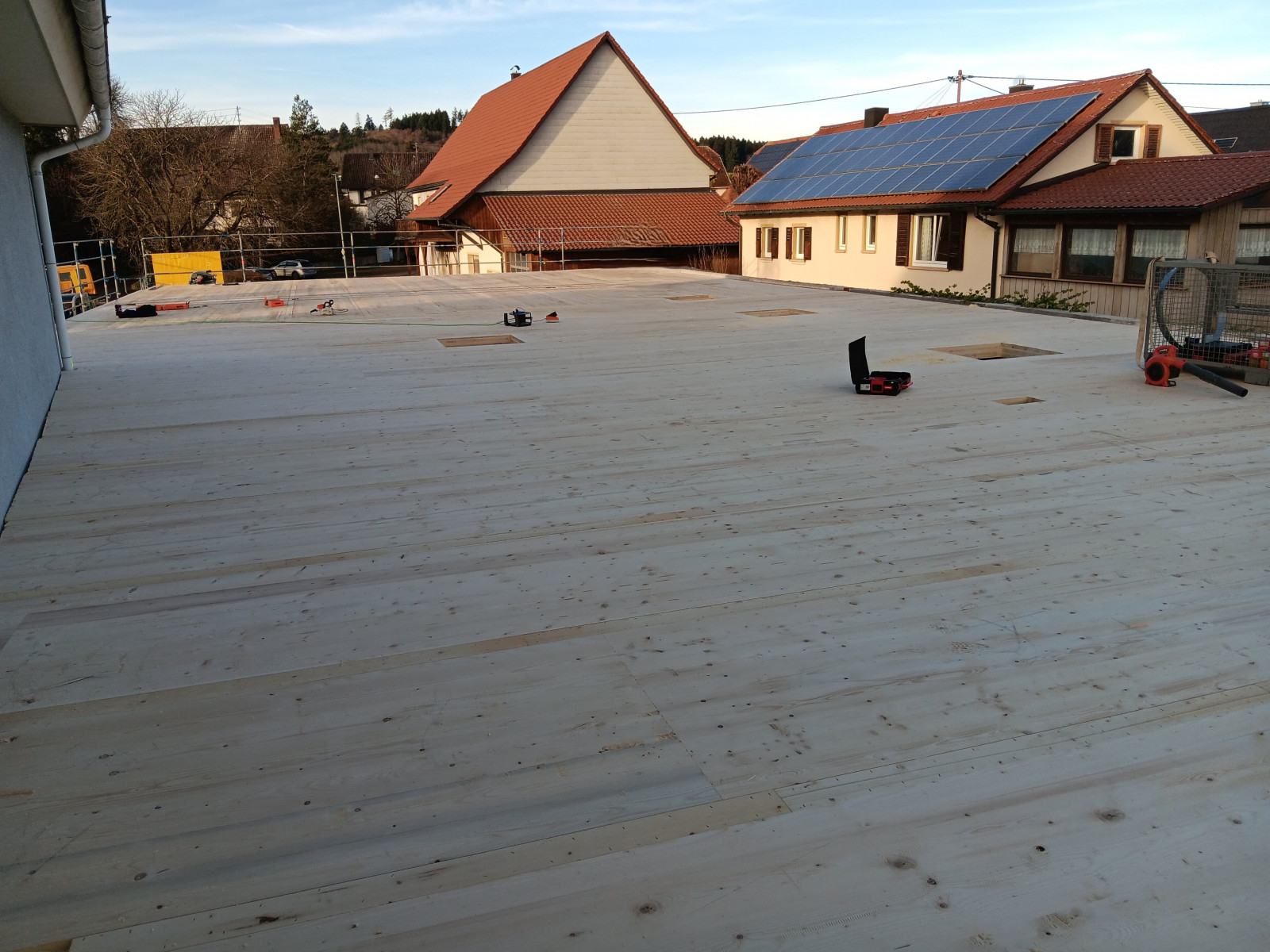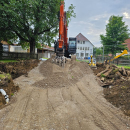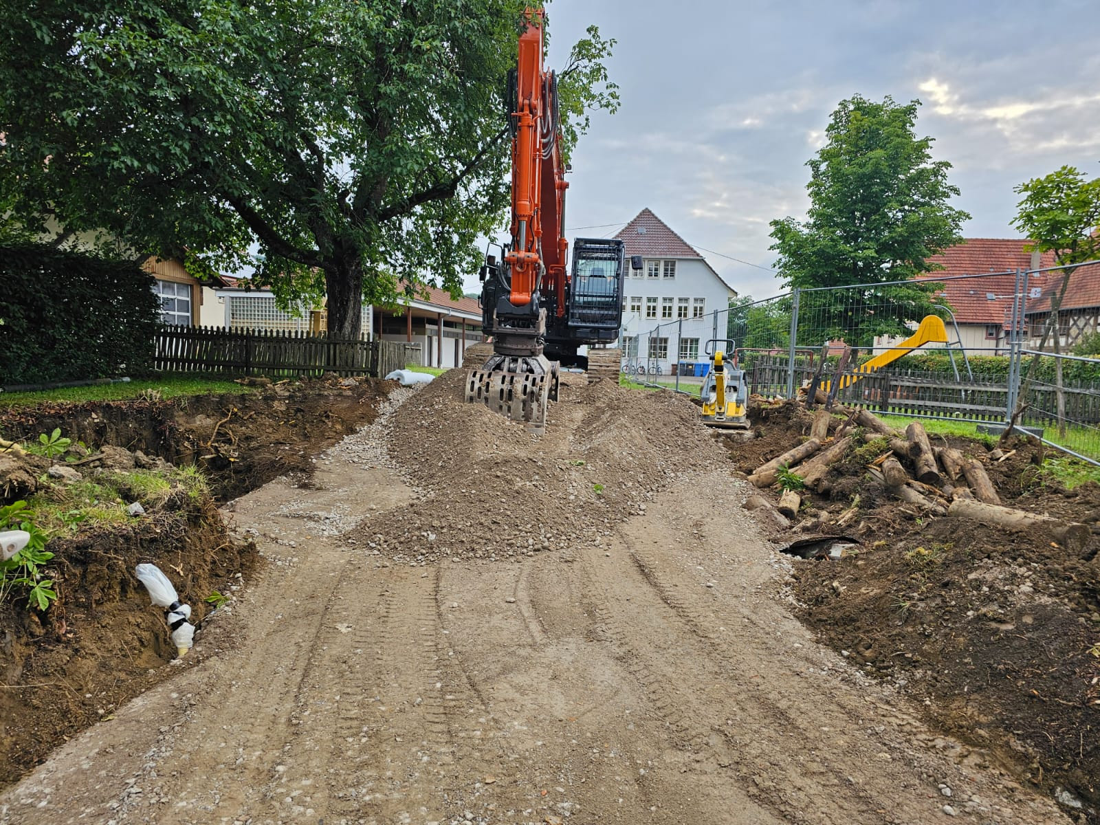 Im Außenbereich wird für die Betreuung ein neuer Spielbereich mit Lagerbereich und Hütte geschaffen.