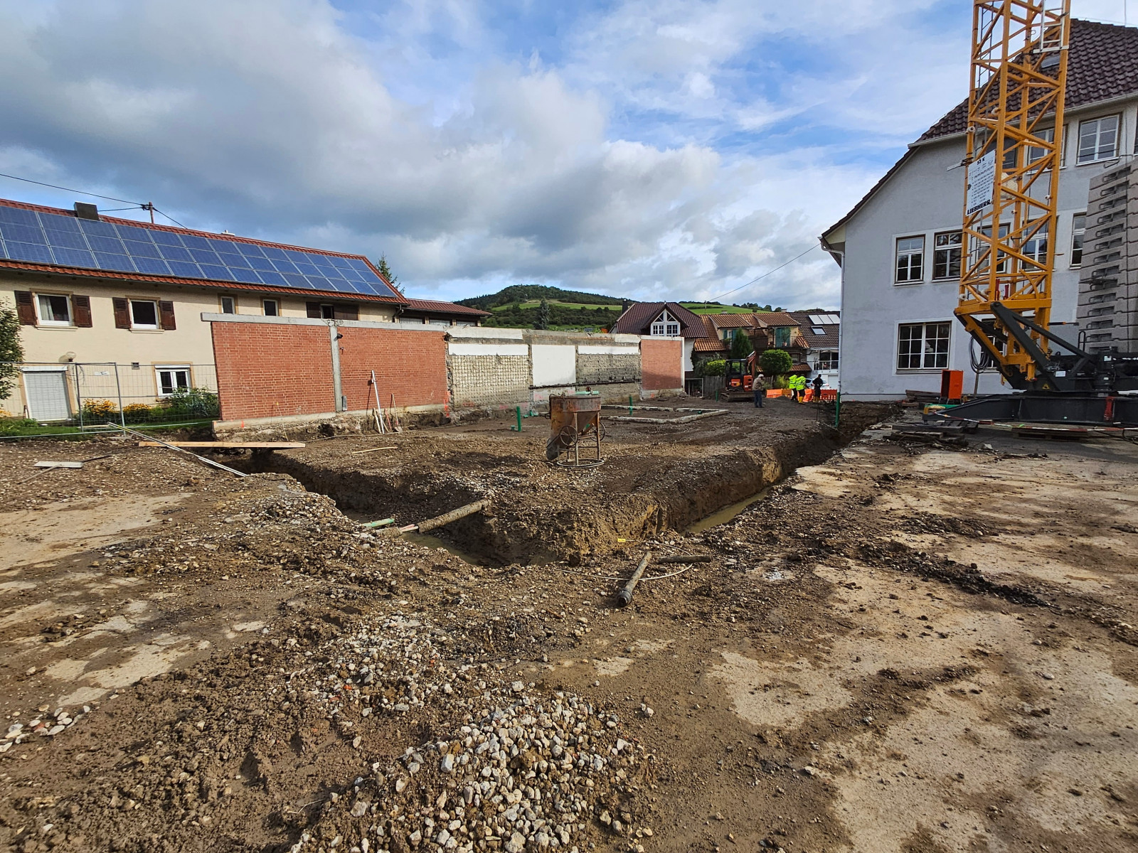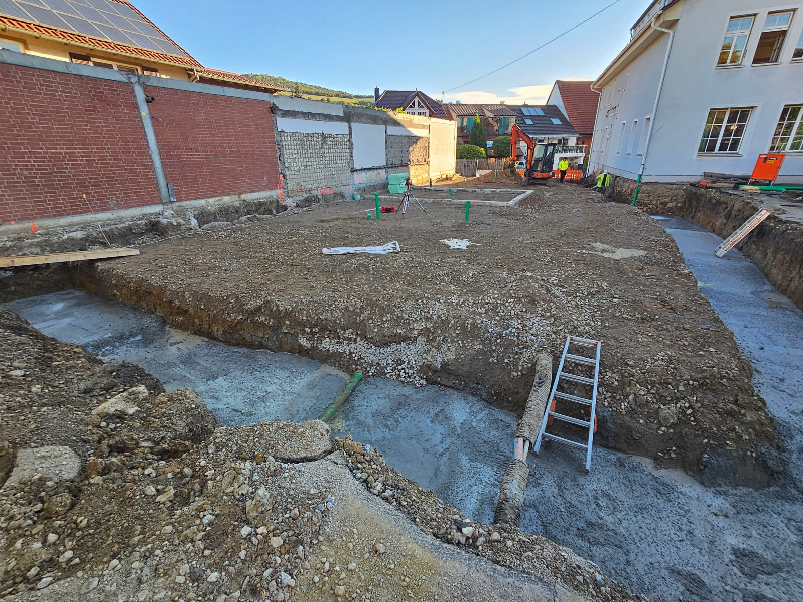 Die bestehende Grundschule in Talheim erhält derzeit einen Anbau für eine Ganztagsbetreuung.
