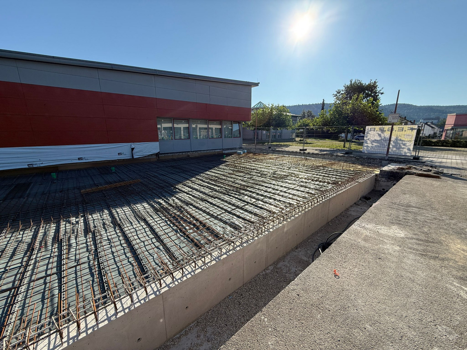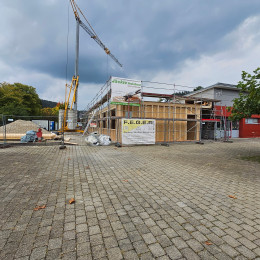 Zur Erweiterung des Ganztagsangebots an der Lippachtalschule in Mühlheim a. d. Donau wird derzeit ein Anbau an das bestehende Grundschulgebäude gebaut.