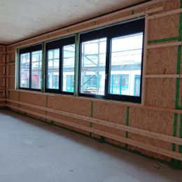 Nach der Fertigstellung sind in dem Anbau ein Hauptbetreuungsraum, ein Ruheraum, ein Bau- und Spielzimmer sowie ein Büro untergebracht, das als Empfang und Besprechungsraum genutzt werden kann.